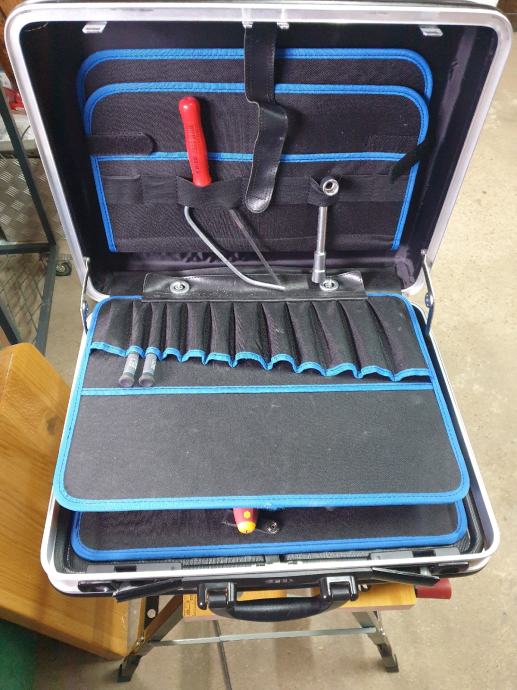 Kofer Unior sa pregradama i pretincima u izvrsnom stanju bez alata prazan.