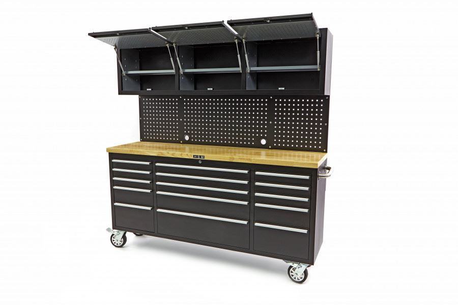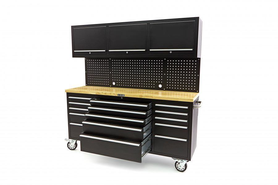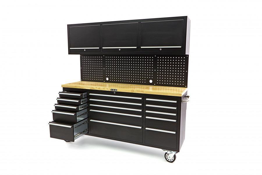 opremljen s 4 kotača s ležajevima, od kojih 2 imaju kočnicekotači visoke kvalitete 150 x 40 mmsve su ladice opremljene protukliznim prostirkamaopremljen s 2 robusne ručke od nehrđajućeg čelikaotvoreni pretinac i ladice mogu se zasebno zatvoritiradna ploča od punog drveta debljine 4 cmčvrste vodilice kugličnih ležajeva (Dvostruki ležaj)Tehnički opis: ukupne dimenzije 198 x 51 x 186 cmdimenzije kolica za alat samo s kotačima i ručkama 198 x 51 x 95 cmdimenzije kolica za alat samo BEZ kotača i ručki 183 x 48 x 76 cmdimenzije desnih 3 gornje ladice 41,5 x 39 x 8 cmdimenzije desne 4. ladice 41,5 x 39 x 15 cmdimenzije desne 5. ladice 41,5 x 39 x 23 cmdimenzije gornjih ladica Srednje 3 83,5 x 39 x 8 cmdimenzije ladice srednjeg 4. 83,5 x 39 x 15 cmdimenzije srednje 5. ladice 83,5 x 39 x 23 cmdimenzije lijeve 3 gornje ladice 41,5 x 39 x 8 cmdimenzije lijeve 4. ladice 41,5 x 39 x 15 cmdimenzije lijeve 5. ladice 41,5 x 39 x 23 cmdimenzije stražnje stijenke 183 x 46 cmdimenzije zidnih jedinica 183 x 30 x 46 cmdimenzije police 22,5 x 63 cmpromjer kotača 150 mmmaksimalni kapacitet kotača 175 Kg. Kotačem. (Ukupno 700 kg.)maksimalni kapacitet po ladici 30 Kgtežina 195 Kgdimenzije pakiranja 190 x 60 x 95 cm]]>