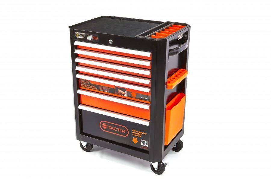 čvrst i profesionalan dizajn i višenamjenski karakter ovih kolica za alat čine ih obaveznim za svakog profesionalcaladice se mogu brzo i jednostavno otvarati i zatvarati pomoću ugrađenih čvrstih vodilica s kugličnim ležajemzahvaljujući integriranoj podjeli na vrhu, možete još jasnije pohraniti alate i materijalesredišnja brava osigurava da se ladice ne mogu jednostavno otvoritispraškasti premaz otporan na udarce i ogrebotine čini kolica puno izdržljivijim i jačim, te daje cjelini profesionalni izgledukupne dimenzije s kotačima i ručkom 70 x 47 x 90 cmukupne dimenzije bez kotača i ručke 66 x 47 x 78 cmunutar dimenzija gornje 4 ladice 49 x 41,5 x 4 cmdimenzije 5. i 6. ladice 49 x 41,5 x 10 cmunutar dimenzija 7. ladice 49 x 41,5 x 20 cmkapacitet ladica cca. 40 kg po ladicipromjer kotača 100 x 25 mmdimenzije pakiranja 76 x 55 x 80 cmtežina 51 Kg]]>