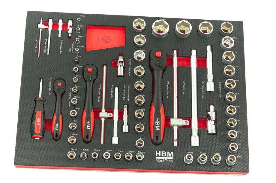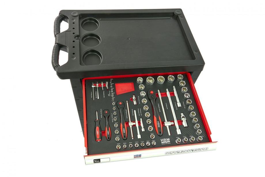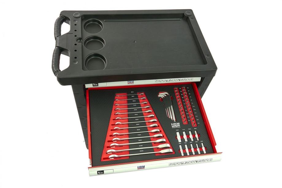 21, 22, 24, 27, 30, 32 mmprodužetak 125 mmprodužetak 250 mmT kruta poluga vrhunska račna 1/2" zglob 2.ladica:set nasadnih ključeva prihvata 1/4 " veličine 5, 6, 7, 8, 9, 10, 11, 12, 13 mmset imbus (u držaču) 1,5, 2, 2,5, 3, 4, 5, 6, 8, 10 mmkombinirani ključevi s račnom veličine 6, 7, 8, 9, 10, 11,