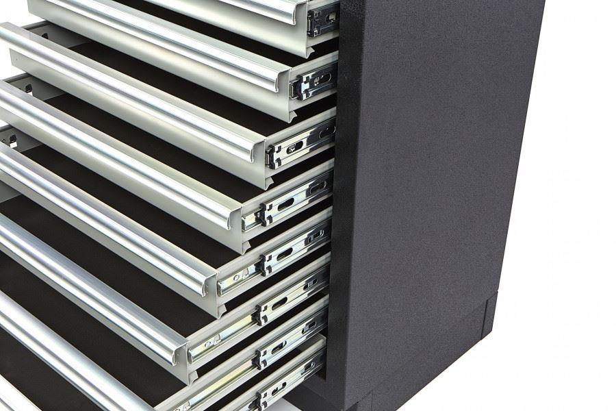 ovaj čvrsti ormarić za alat je prednost svake radionicejedinica s ladicama čuva vaš alat sortiranim i sigurno pohranjenimmože se zaključati ključem tako da možete sigurno ostaviti svoje stvariuključen je i rezervni ključovisno o tome kako ga koristite, radnu ploču možete naručiti zasebno.sve ladice su opremljene protukliznim prostirkama, tako da vaš alat ostaje na svom mjestu i sprječava oštećenjasve ladice su opremljene čvrstim vodilicama s dvostrukim kugličnim ležajem i protukliznim prostirkamamože se zaključati bravom (dolazi s rezervnim ključem)ovaj čvrsti ormarić za alat održava alate za rad organiziranimizveden s praškastim premazom u boji antracita, može izdržati udarcezidovi su izrađeni od aluminija debljine 1 mm i garantirano će trajati godinamaovaj profesionalni ormar za alat je dobra investicija za svaku tvrtkuuz naše jamstvo kvalitete znate da je vrhunske kvalitetečak su i vodilice ladica dvostruko nosive, pa se bez problema može jako opteretitidolazi bez čvrsstoga drvenoga vrha. Opcija: broj artikla 9170Tehnički opis: dimenzije proizvoda 68 x 46 x 91 cm. ( Š x D x V , vanjske dimenzije )unutarnje dimenzije ladica 9 Ladica dimenzija 56,5 x 40 x 6,5 cmdebljina materijala 1 mmboja Siva / Antracit Hammered Praškasti premazdimenzije pakiranja 74,9 x 52 x 99,4 cmtežina 61,8 kg]]>