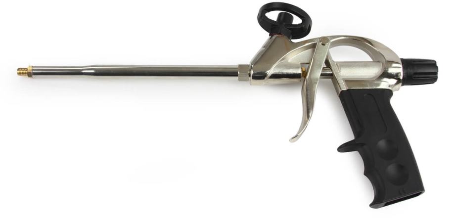 Prekriven je slojem teflona koji sprječava lijepljenje pjene na njega. Pištolj je opremljen gumbom za precizno doziranje pjene.