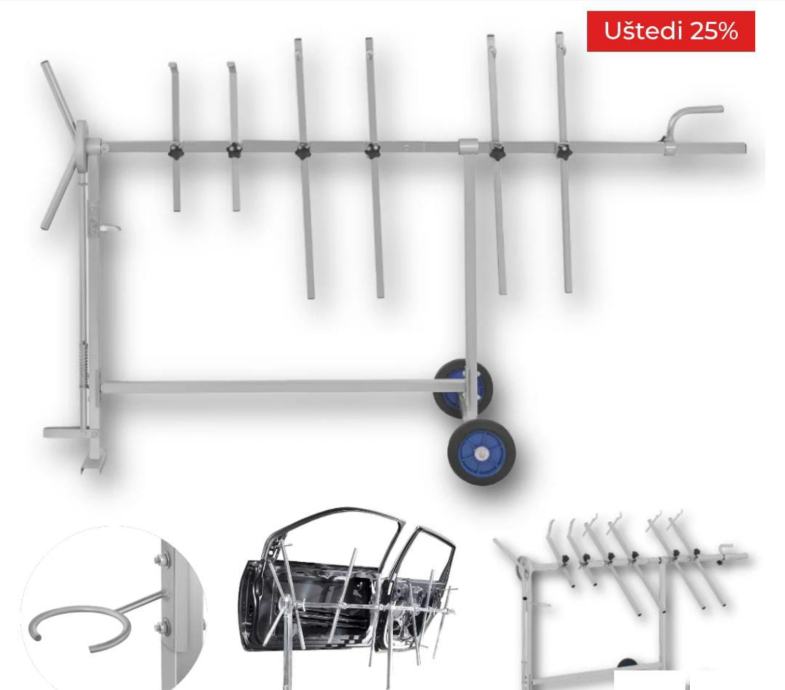 Izvrsno za odlaganje poklopaca, gepeka, bokobrana, odbojnika i malih dijelova za brušenje i bojanje.