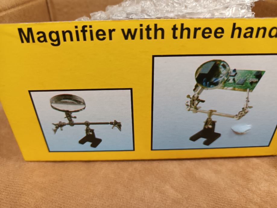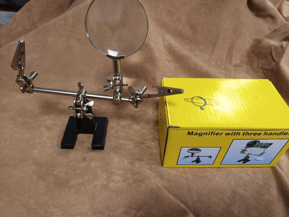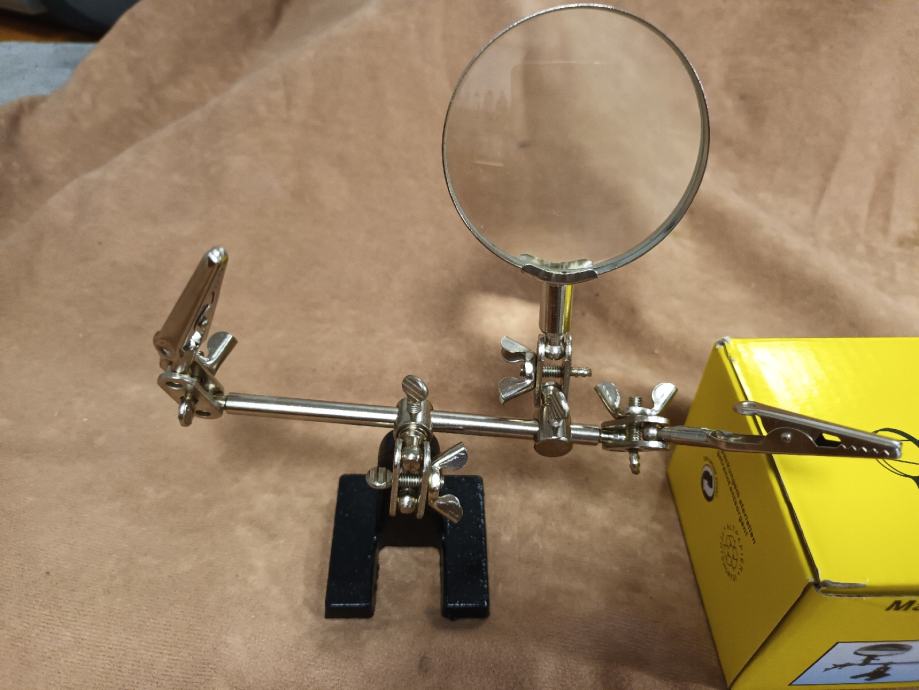Povećalo sa držačima (štipaljkama),može se koristiti na razne načine i različite svrhe (elektronika,urari,,,).