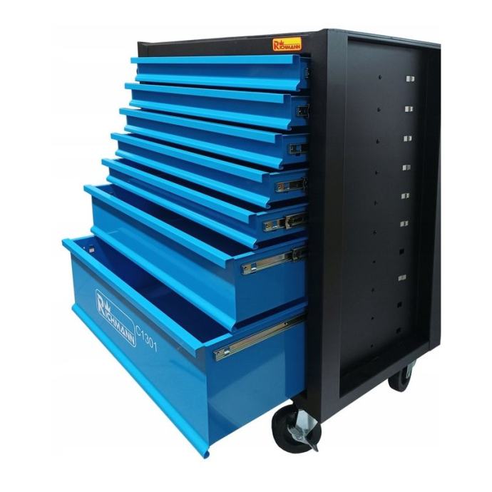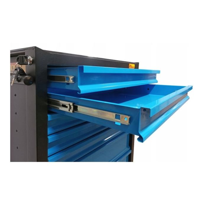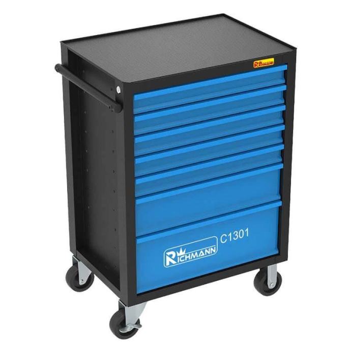 radionička kolica moderne konstrukcije i dizajna namijenjena za korištenje u radionicama, a zbog atraktivne cijene i u kućnoj garaži.ormarić je opremljen sa 7 ladica s kugličastim vodilicama različitih dubina koje omogućuju bolji raspored korisničkih alata, također i onih većihladice se izvlače gotovo do samog kraja, jamčeći jednostavan pristup alatimacentralna brava sa setom od 3 ključa zaključava sve ladice odjednom, štiteći alat od neovlaštenog pristupakotači promjera 100 mm - 2 okretna, jedan opremljen kočnicomširoka i snažna ručka olakšava manevriranje kolicimaradna ploča kolica prekrivena je gumenom podlogom debljine cca 0,5 cm7 ladicadimenzije kolica: 630 x 447 x 1003 mmdimenzije ladica: od 1. do 5. ladice: 530 x 400 x 55 mm6. ladica: 530 x 400 x 125 mm7. ladica 530 x 400 x 195 mm]]>