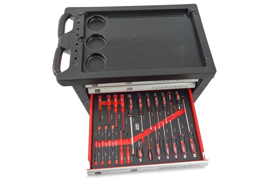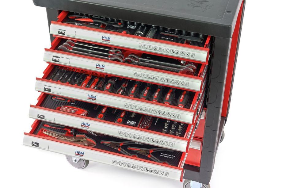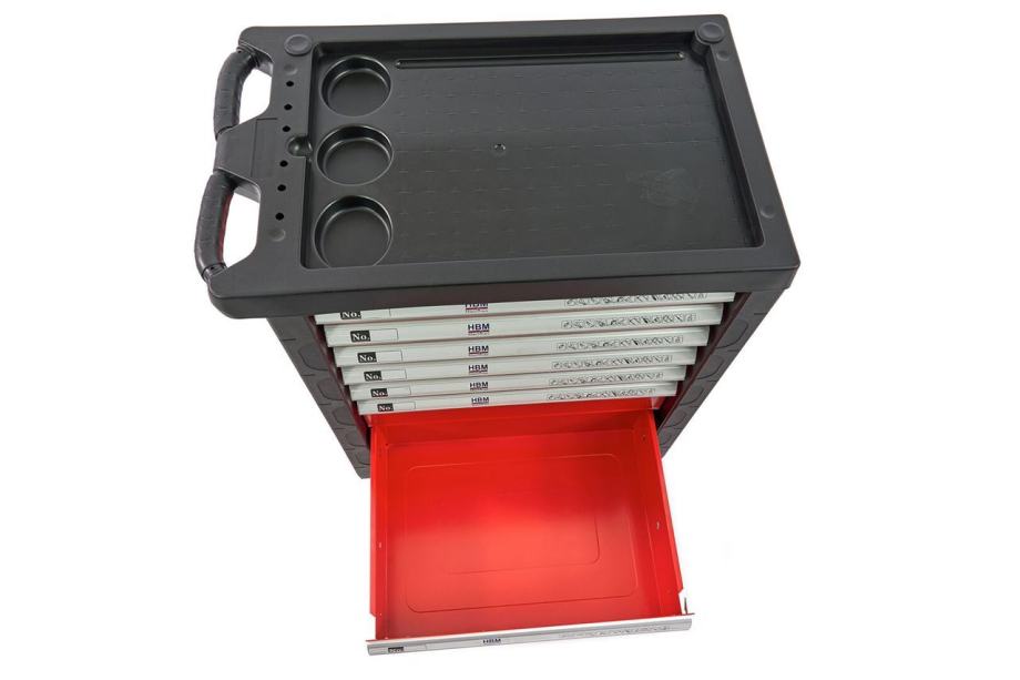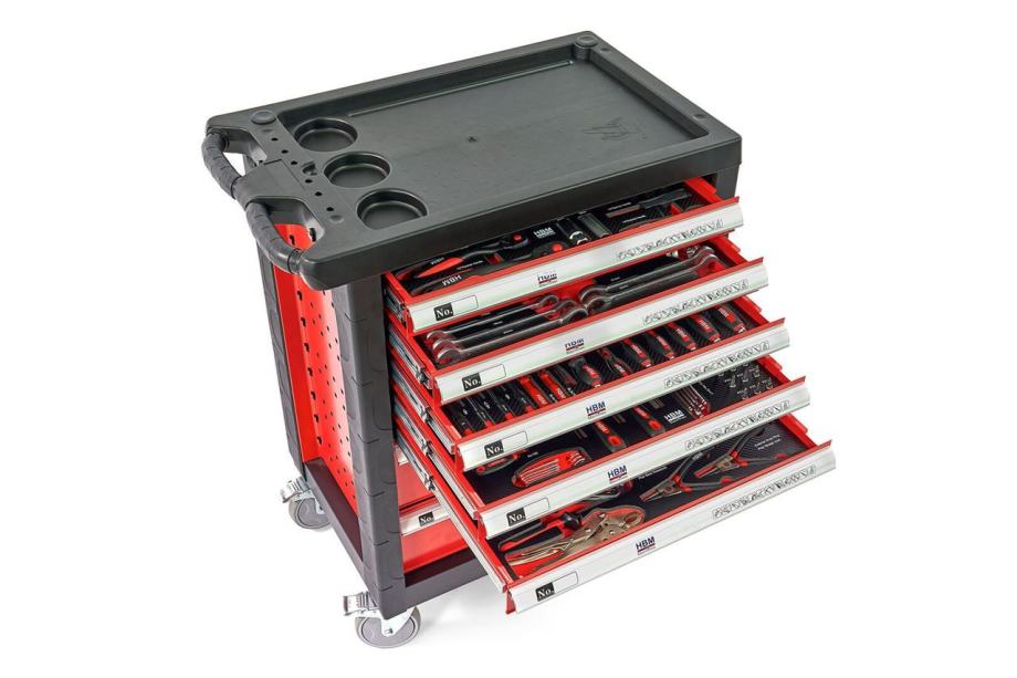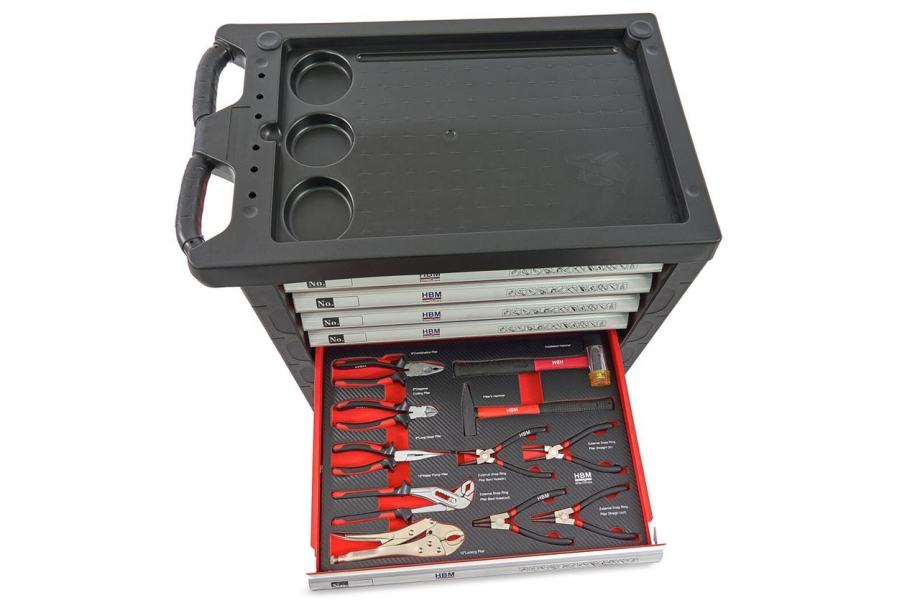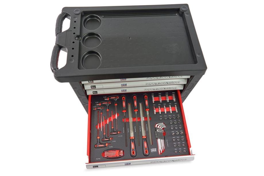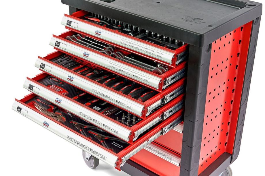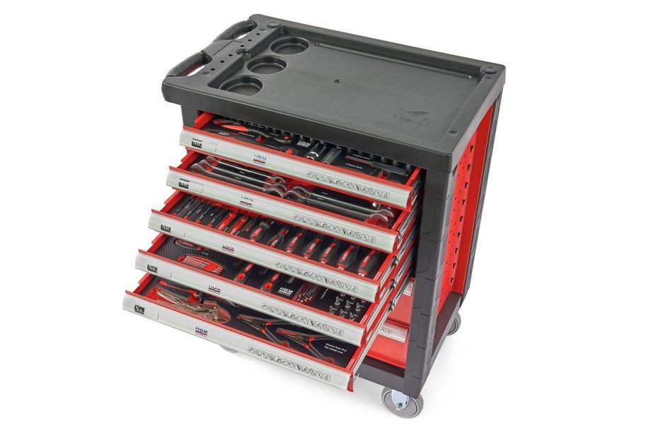 opremljena izdržljivim umetcima alata CARBON izgledakolica za alate opremljena su sa 7 ladica koje imaju okove sa ležajevimakolica za alate opremljena su s 2 fiksna i 2 okretna kotača, 1 s kočnicomkolica za alate se zaključavaju sa centralnoj braviladice se mogu zaključati po ladicisve ladice su opremljene otvarače na podizanje preko cijele širine ladica meko zatvaranje ladica "Soft close"dimenzije 78 x 48 x 105 cmtežina 79,5 KgKolica sadrže: 1. ladica: 1/4" premium račna1/4" zglob, 50 mm1/4" produžetak, 100 mm1/4" kratki nasadni ključevi: 4, 4.5, 5, 5.5, 6, 7, 8, 9, 10, 11, 12, 13, 14 mm3/8" premium račna3/8" zglob, 75 mm3/8" produžetak, 150 mm3/8" kratki nasadni ključevi: 8, 10, 11, 12, 13, 14, 15, 16, 17, 18, 19 mm3/8" Torx nasadni ključevi: E10, 11, 12, 14, 16, 18, 201/2" premium račna1/2" zglob, 125 mm1/2" produžetak, 250 mm1/2" kratki nasadni ključevi: 8, 9, 10, 11, 12, 13,14, 15, 16, 17, 19, 21, 22, 24, 27, 30, 32 mm2. ladica: ključevi na račnuveličine: 6, 7, 8, 9, 10, 11, 12, 13, 14, 15, 16, 17, 18, 19, 20, 21, 22 mmokaste ključeveveličine 6 x 7, 8 x 9, 10 x 11, 12 x 13, 14 x 15, 16 x 17, 18 x 19, 20 x 22 mm3. ladica:samozatezna kliješta, 250 mmkliješta za pumpu vode 250 mmkombinirana kliješta, 200 mmravna kliješta, 200 mmkliješta za rezanje, 150 mmsavijena kliješta za unutarnji uskočnik, 170 mmravna kliješta za unutarnji uskočnik, 170 mmsavijena kliješta za vanjski uskočnik, 180 mmsavijena kliješta za unutarnji uskočnik, 180 mmčekićgumeni čekić4. ladica:ravni odvijači:3x75, 3,5x75, 4x100, 5x150, 6,5x150, 8x175, 6x38križasti odvijači:PH 0x75, PH 1x100, PH 2x100, PH 2x125, PH3x150, PH 4x200, PH2x38Izolirani ravni odvijači3x75, 4x100, 5.5x125, 6.5x150križni izolirani odvijači PH 1x100, PH 2x100set preciznih odvijačaravni: 1.8x40, 2.0x40, 2.5x40, 3.0x40križni: PH 0x40, PH 00x40, PH 000x405. ladica:T imbus s okruglom glavom:2 x 100, 2.5 x 100, 3 x 100, 4 x 150, 4.5 x 150, 5 x 150, 6 x 150, 8 x 200, 10 x 200 mmT imbus:2 x 100, 2.5 x 100, 3 x 100, 4 x 150, 4.5 x 150, 5 x 150, 6 x 150, 8 x 200, 10 x 200 mmset turpija, trokut, ravna, okrugla, kvadratna, polumjesecset imbusa na T ručku veličine 2 x 100, 2,5 x 100, 3 x 100, 4 x 150, 5 x 150, 6 x 150 mmset nasadnih ključeva prihvata 1/4 " sastoji se odveličine 5, 6, 7, 8, 9, 10, 11, 12, 13 mm.set imbusa u držaću 1,5, 2, 2,5, 3, 4, 5, 6, 8, 10 mm.torx set (u držaču) T9, T10, T15, T20, T25, T27, T30, T406. i 7. ladica su prazne]]>