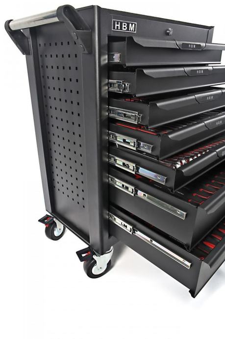 bilo koje željeno mjestočvrsta ručka za upravljanje kolicima za alat tijekom vožnjeukupne dimenzije s kotačima 68 x 46 x 103 cmukupne dimenzije bez kotača 68 x 46 x 86 cmdimenzije gornjih 5 ladica 56,5 x 40 x 7 cmdimenzije 6. i 7. ladice 56,5 x 40 x 15 cmdimenzije pakiranja 74,5 x 52,5 x 91,5 cmtežina 93,5 kg