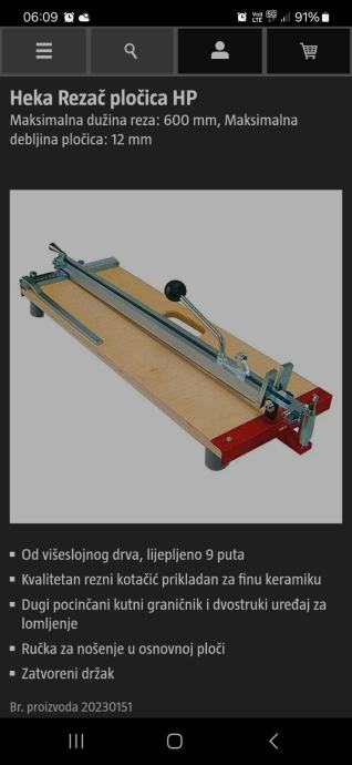 Maksimalna dužina reza: 600 mm, Maksimalna debljina pločica: 12 mm