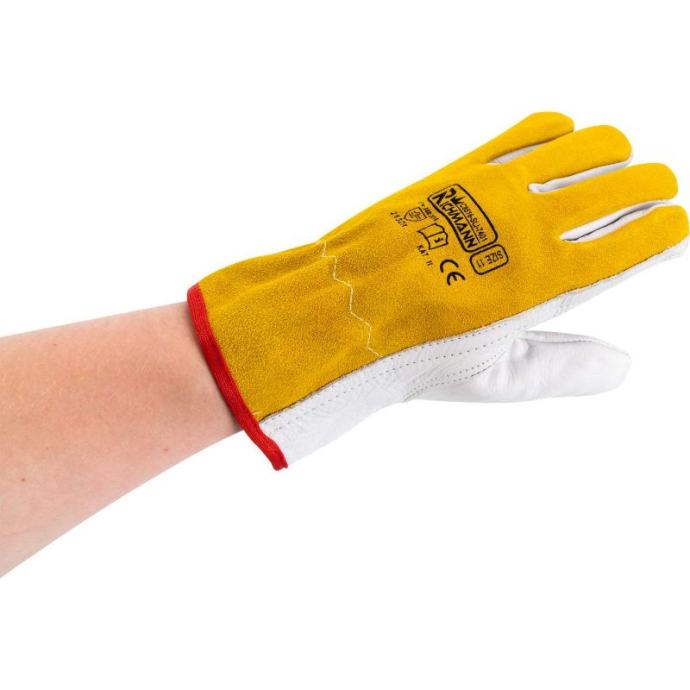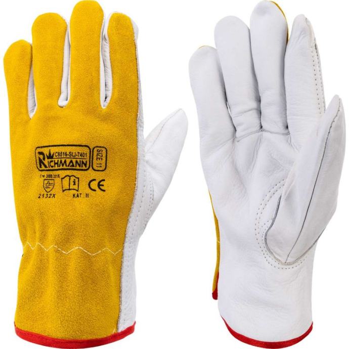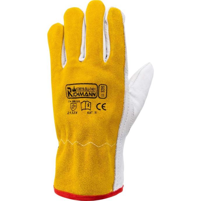 Rukavice za varenje od goveđe kože veličina 11 (XXL).U potpunosti izrađena od goveđe kože, koja se odlikuje povećanom izdržljivošću u odnosu na kozju kožu.Završena elastičnim rubom, savršeno prianja uz zapešće.Svi elementi rukavica povezani su dvostrukim šavom.Hvataljka je izrađena od jednog komada kože, palac je našiven.Ojačani dlan i vrhovi prstiju.Pružaju zaštitu od habanja, posjekotina, trganja i probijanja (na ljestvici od 2, 1, 3, 2).Imaju 2. kategoriju zaštite.Zadovoljavaju sve europske standarde (CE) i EN 388*.Također se mogu koristiti za radove u građevinarstvu, strojarstvu i teškoj industriji.RAZINE OTPORA:otpornost na habanje: 2otpornost na rezove: 1otpornost na trganje: 3otpornost na probijanje: 2Tehnički opis:Tip: Rukavice za zavarivanjeMaterijal: goveđa kožaVeličina: 11 (XXL)Norme: CE, EN 388op. kolektivno: 12 parovaBroj dijela: C8516 (SLI-7401)EAN: 5906741685160Ukupna težina [kg]: 1.474* Norma EN388 odnosi se na sve vrste rukavica za fizičke i mehaničke opasnosti kao što su abrazija, posjekotina oštrim predmetom, probijanje i trganje. Ovaj standard se ne odnosi na rukavice otporne na vibracije]]>