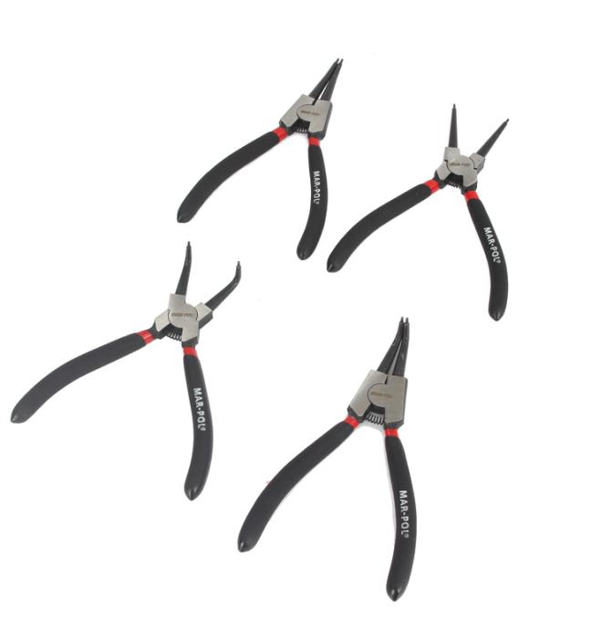 Set seger kliješta služe za sastavljanje i rastavljanje sigurnosnih prstenova. Kliješta su izrađena od izdržljivog CrV (krom-vanadij) čelika visoke čvrstoće, s dvobojnim gumenim ručkama.