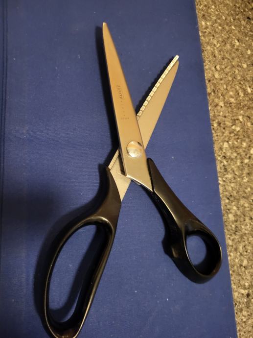 PRILIKA--Škare nazubljene,režu cik-cak,kaljeni-nehrđajući alatni čelik duž=220mm, takve škare u specijaliziranoj trgovini koštaju 40-tak eura--rijetke su za naći ,porijeklo-Germany ,vidi slike! mt(1-rega-škrinj)