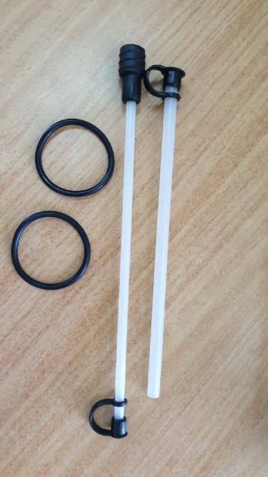 U kompletu sa špricom su dvije cijevi (moguće produljenje korištenjem obje istovremeno) plus rezervni set brtvi.
