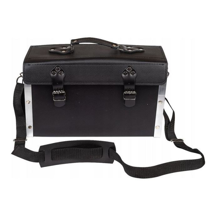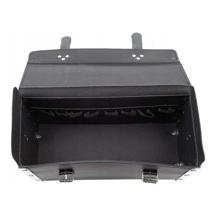 univerzalna, kožna monterska torbaizrađen od ekološke kožečvrsta struktura koja osigurava sadržajkutovi potkovani aluminijskim kutovimaopremljen odvojivim remenom za ramena podesive duljine i zaštitnim remenom za rame s navojemručka i svi elementi povezani su čeličnim zakovicama i završeni čvrstim šavompreklop torbe zatvara se pouzdanim kopčamaunutar glavnog pretinca nalazi se 6 petlji za alatekompaktna veličina torbe će smjestiti sav potreban alatpoljski proizvodTehnički opis: vrsta: Torba za alatmaterijal: Eko koža + aluminijcrna bojaorganizacija mjesta: 1 glavni pretinac + 8 loop ručkimaks. dužina remena: 170 cmdimenzije: 400 x 230 x 160 mmtežina: 1325 g]]>