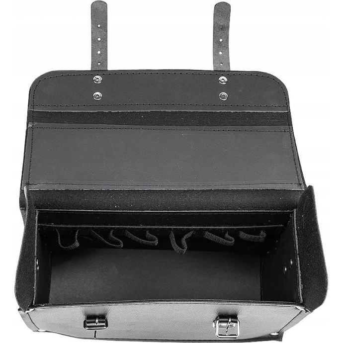 univerzalna, kožna monterska torbaizrađen od ekološke kožečvrsta struktura koja osigurava sadržajkutovi potkovani aluminijskim kutovimaopremljen odvojivim remenom za ramena podesive duljine i zaštitnim remenom za rame s navojemručka i svi elementi povezani su čeličnim zakovicama i završeni čvrstim šavompreklop torbe zatvara se pouzdanim kopčamaunutar glavnog pretinca nalazi se 6 petlji za alatekompaktna veličina torbe će smjestiti sav potreban alatpoljski proizvodTehnički opis: materijal: Umjetna kožacrna bojaorganizacija mjesta: 1 glavni pretinac + 6 loop ručkimaks. dužina remena: 170 cmdimenzije: 300 x 190 x 120 mmtežina: 770 g]]>