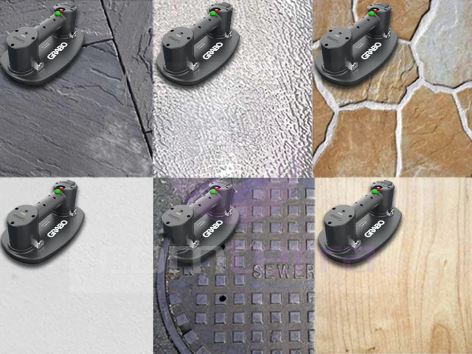 - Osim klasičnih materijala, grabo plus vakumski podizač pogodan je i za šaht ploče, gipsane ploče, poklopce za odvod, razne radne ploče, vrata, kamene ploče, betonske opločnike, teksturirane pločice