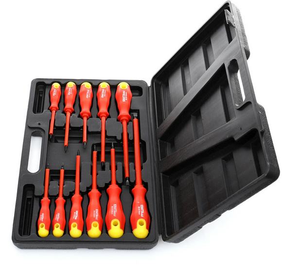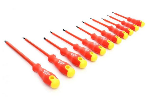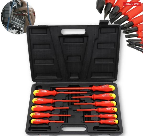 Set od 11 komada izoliranih preciznih odvijača koji će se koristiti u elektroinstalaterskim radovima.