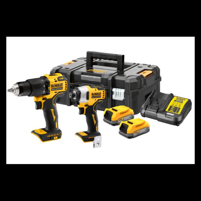 2-dijelni DeWALT kombinirani paket koji se sastoji od DCD709 akumulatorske bušilice i DCF809 akumulatorskog udarnog ključa, 2 Powerstack baterije i punjača u T-STAK kutiji IIDCD709:Snažna 2-brzinska akumulatorska udarna bušilica vrlo kompaktnih dimenzija i manje težineDulje vrijeme rada po punjenju baterije i dulji vijek trajanja zahvaljujući inovativnoj tehnologiji motora bez četkicaOptimalno usklađen 2-brzinski potpuno metalni mjenjač za savršen prijenos snage15-stupanjski modul zakretnog momenta sa sigurnim i pouzdanim momentom isključivanja osigurava precizno uvrtanje u svim postavkamaLako podesiva elektronika prekidača za točno bušenje i precizno uvrtanjeDugotrajna uporaba bez problema zahvaljujući sigurnosnoj elektronici (stalna provjera temperature akumulatora, struje i zaštite od pražnjenjaRobusna brza stezna glava od 13 mm s čeljustima za centralno stezanje i jednostavnim rukovanjem zahvaljujući automatskom zaključavanju vretenaSavršeno rukovanje zahvaljujući iznimno kompaktnom dizajnu ukupne duljine od samo 17,5 cm, kao i vrlo laganoj konstrukciji i ergonomskim gumiranim područjima za držanjeSnažno LED svjetlo s vrlo visokom svjetlinom za rad bez problema u svim uvjetima osvjetljenjaJednostavan za korištenje zahvaljujući robusnoj metalnoj kuki za remenDCF809:Najnovija generacija snažnih 1/4" akumulatorskih udarnih ključeva s velikim učinkom i jakim okretnim momentom s iznimno kompaktnim dimenzijama i vrlo malom težinomDulje vrijeme rada po punjenju baterije i dulji vijek trajanja zahvaljujući inovativnoj tehnologiji motora bez četkicaElektronička brzina i brzina udarca i stoga maksimalna kontrola u svim primjenamaVisoki okretni moment od gotovo 200 Nm za teške radove uvrtanja.Lako podesiva elektronika prekidača za precizno uvrtanje.Standardne Powerstack baterije s dodatnim prednostima:Vrlo kompaktne dimenzije i manja težina zahvaljujući korištenju inovativne tehnologije džepnih baterijaUnutarnji otpor ćelija omogućuje učinkovitiji protok struje i time znatno veći razvoj snage stroja u određenim primjenamaDuži radni vijek i stoga veći broj ciklusa punjenja zahvaljujući boljim mogućnostima odvođenja topline zahvaljujući velikom, ravnom vanjskom obliku ćelijaUniverzalno kompatibilan sa svim 18 voltnim XR strojevima i punjačimaOdvijač se također može koristiti sa svim 18 voltnim XR ili XR Flexvolt baterijamaTehnički podaci:Baterija: 18 volti / 1,7 Ah s tehnologijom torbica|tehnologija punjive baterijeSve 18 voltne XR ili XR Flexvolt baterijeDCD709:Broj okretaja u praznom hodu: 0 - 450 / 1.650 min-1Maksimalni okretni moment (h/w): 65 / 26 NmMaksimalni kapacitet bušenja u drvo / metal / kamen: 30 / 13 / 13 mmRaspon stezne glave bušilice: 1,5 - 13 mmTežina (uključujući bateriju): 1,4 kgRazina zvučnog tlaka (LPA): 88 db(A)|Razina zvučne snage (LWA): 99 db(A)K vrijednost (zvučni tlak): 3,0 db(A)Vibracija: