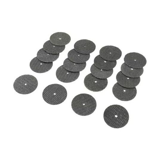 Set od 20 elemenata za mini, preciznu ručnu brusilicu. Set se sastoji od 20 korund diskova. Namijenjeni su za precizno rezanje metala na malim predmetima ili površinama. To je omogućeno relativno malim promjerom - 32 mm i debljinom od 2 mm.