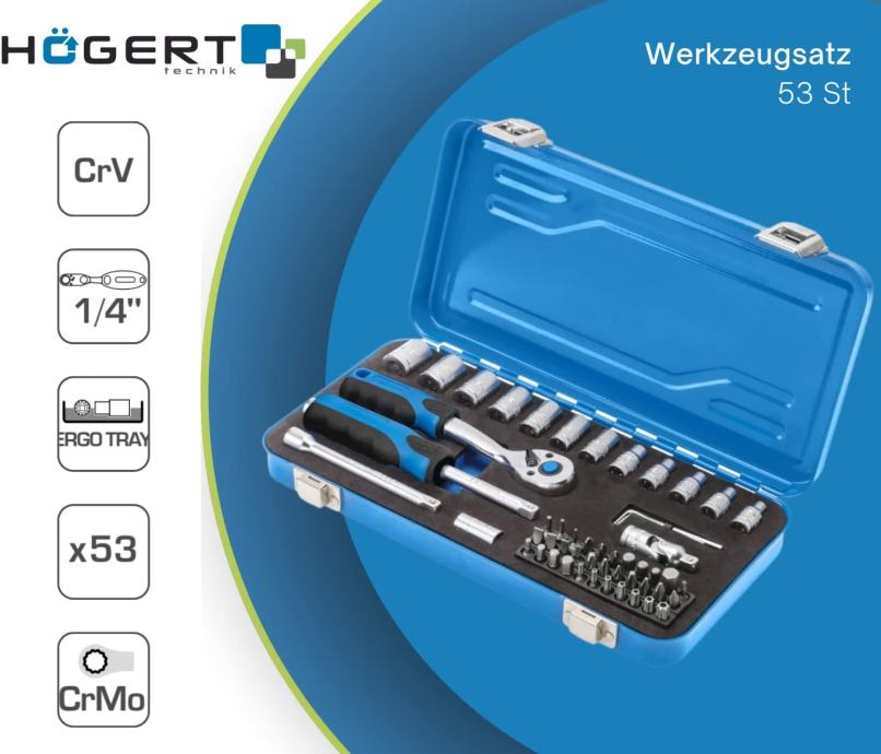 Nasadni ključevi: 1/4”: 4, 4,5, 5, 5,5, 6, 7, 8, 9, 10, 11, 12 i 13 mm