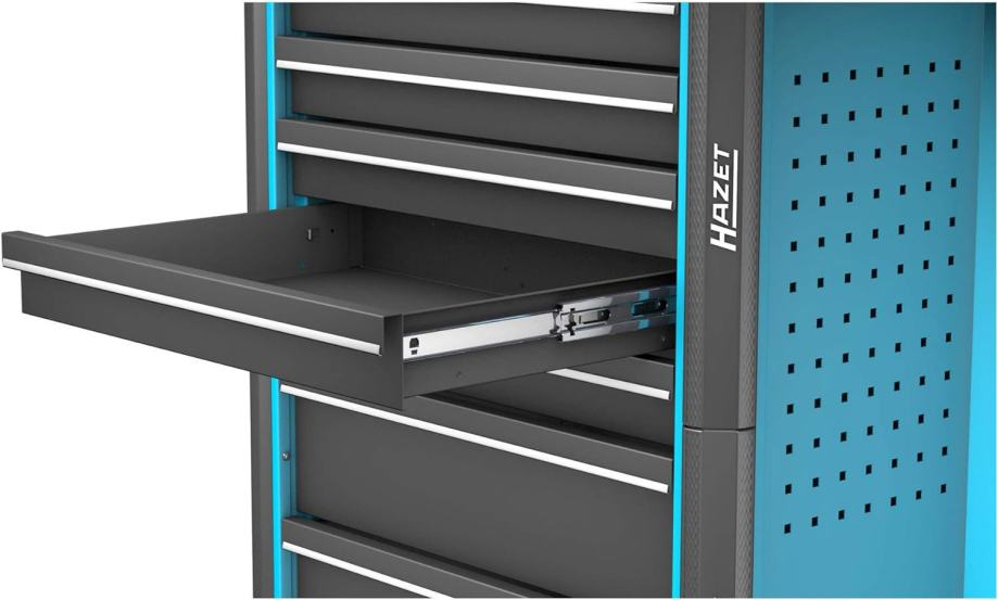 Kolica za alat. 5 ravnih i 2 visoke ladice. Puno veći skladišni i radni prostori od plastike (179N) ili nehrđajućeg čelika (179NX). Potpuno zatvorena radna površina štiti unutrašnjost kolica od curenja tekućina. Sučelja integrirana u radno područje za dodatke kao što su držači za prijenosna računala i gornji moduli. Tijelo / ručka za povlačenje. Iznimno robustan dizajn zahvaljujući strukturi s dvije stijenke. Potpuna zavarena konstrukcija cijelog tijela za tešku svakodnevnu upotrebu u radionici. Optimizirana, popustljiva zaštita rubova na sva četiri kuta sa stvarnom zaštitom od udaraca zahvaljujući unutarnjem konceptu prigušenja. Ergonomski optimizirana ručka za povlačenje za bolje manevriranje. Ergonomski raspoređen položaj bočne brave za bolju upravljivost štiti ključeve i bravu od oštećenja