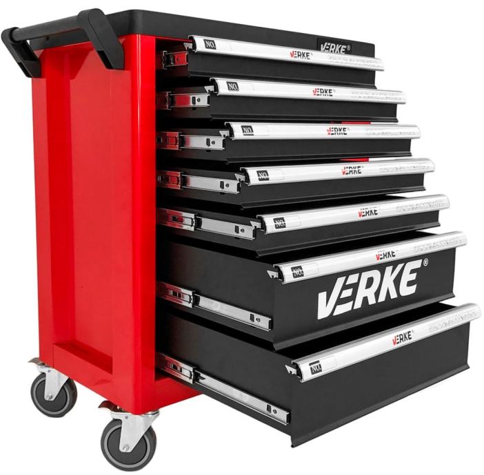 7 ladica na kugličnim ležajevima, plus bočna ladica koja se može zaključati.