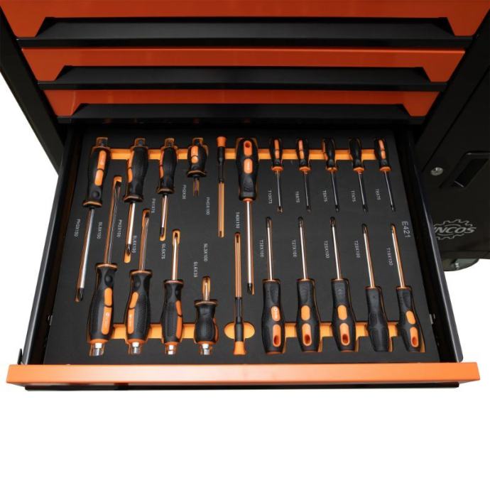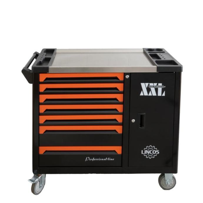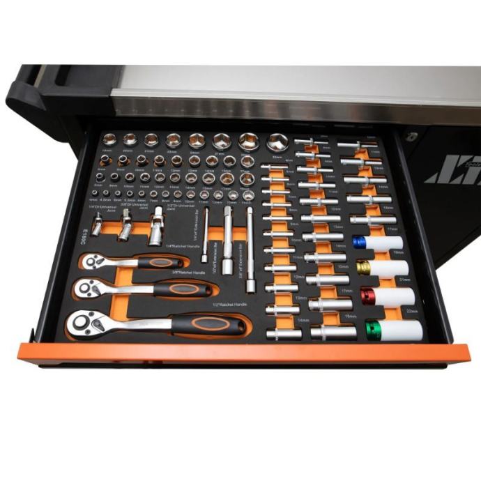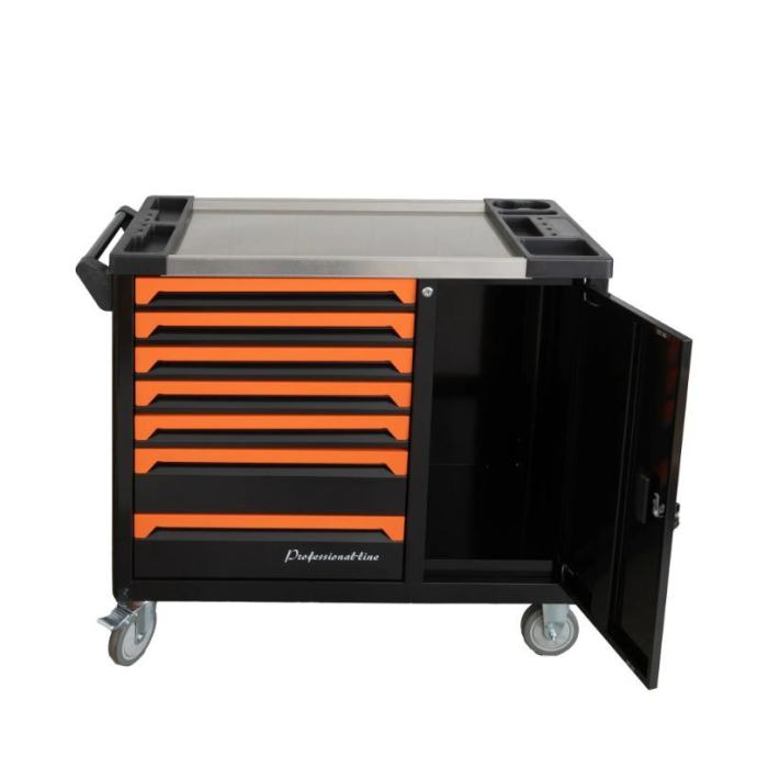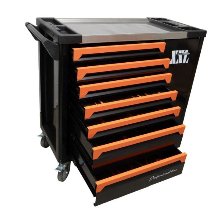 Sa svojim velikodušnim kapacitetom i 7 prostranih ladica, ovaj ormarić za alat nudi dovoljno prostora za pohranu širokog raspona alata i opreme. Bilo da trebate pohraniti ključeve, odvijače, utičnice ili drugi alat. Čvrsta konstrukcija osigurava izdržljivost i dugovječnost, što ga čini pouzdanim izborom za osobnu i profesionalnu upotrebu. Svaka je ladica promišljeno dizajnirana s glatkim klizačima, što omogućuje lak pristup vašem alatu.