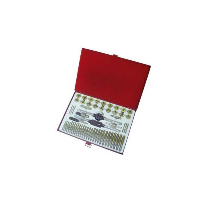 Obloženo TIN-omPrethodno glavno glodalo, naknadno glodalo i matrice u sljedećim veličinama i razmacimaM2x0,4, M3x0,5, M3x0,6, M3x0,5, M3,5x0,6, M4x0,75, M4x0,7, M5x0,8, M5x0,9, M6x0,75, M6x1, M7x0,75, M7x1, M8x1, M8x1,25, M10x1,25, M10x1,5, M12x1,25, M12x1,751 držač matrice1 držač slavine1 T-držač za slavine1 odvijač1 mjerač navoja