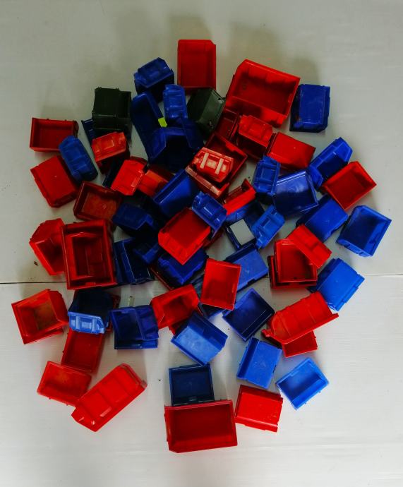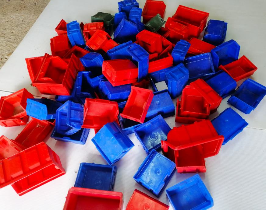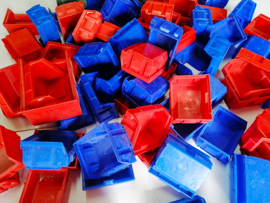 PVC kutija, posuda za pohranu spremanje i izlaganje roba u skladištima, trgovinama, posuda za vijke, podloške, alat, organizator za svaku radionicu u raznim veličinama (10x10cm, 10x15cm) 78kom, večina novo nekorišteno ostalo kratko korišteno, na prodaju ISKLJUČIVO U KOMPLETU !