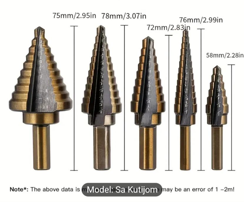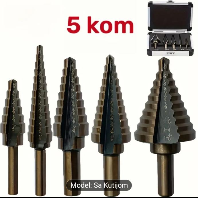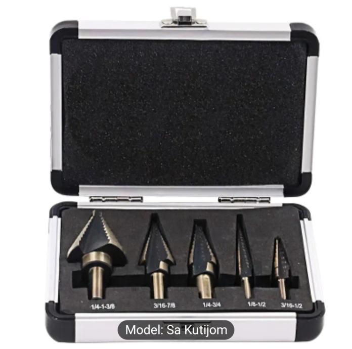 Set od 5 kobaltnih stupnjevitih konusnih svrdla, za rupe, u kutiji