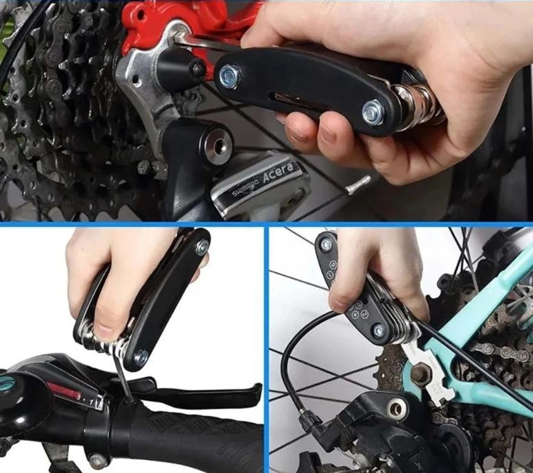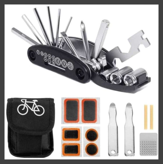 ✿ Višenamjenski alati za popravak bicikala i set za krpljenje guma.