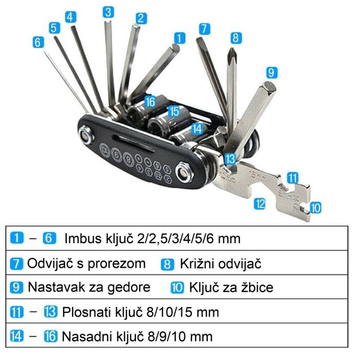 - Plosnati ključevi: 8/10/15 mm,