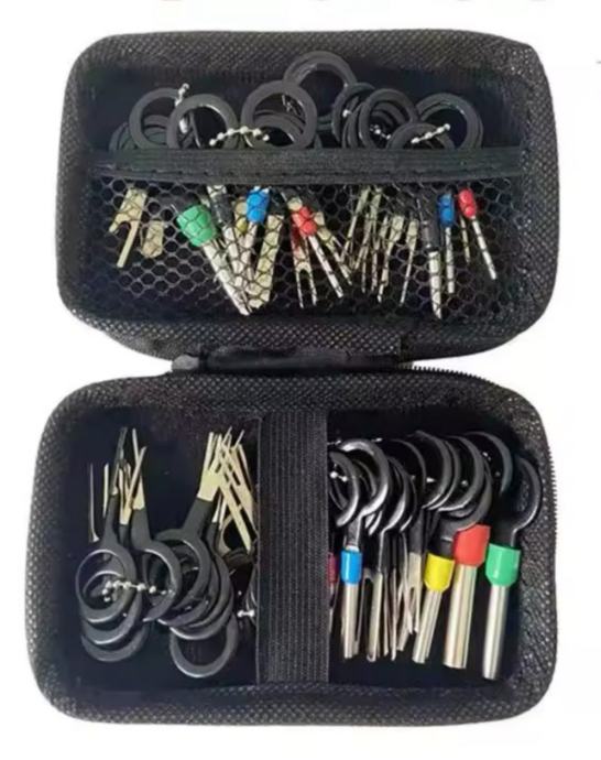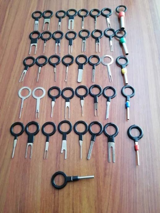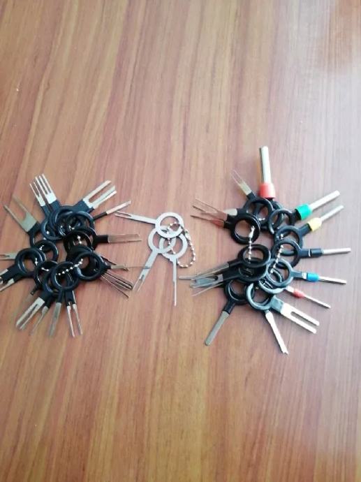 Novo, komplet sadrži 41 komad ključeva različitih tipiziranih oblika za pritisak na stopicu ili pin unutar konektora čime se žica zajedno sa stopicom vadi glatko i bez ikakvog naprezanja ili oštećenja.