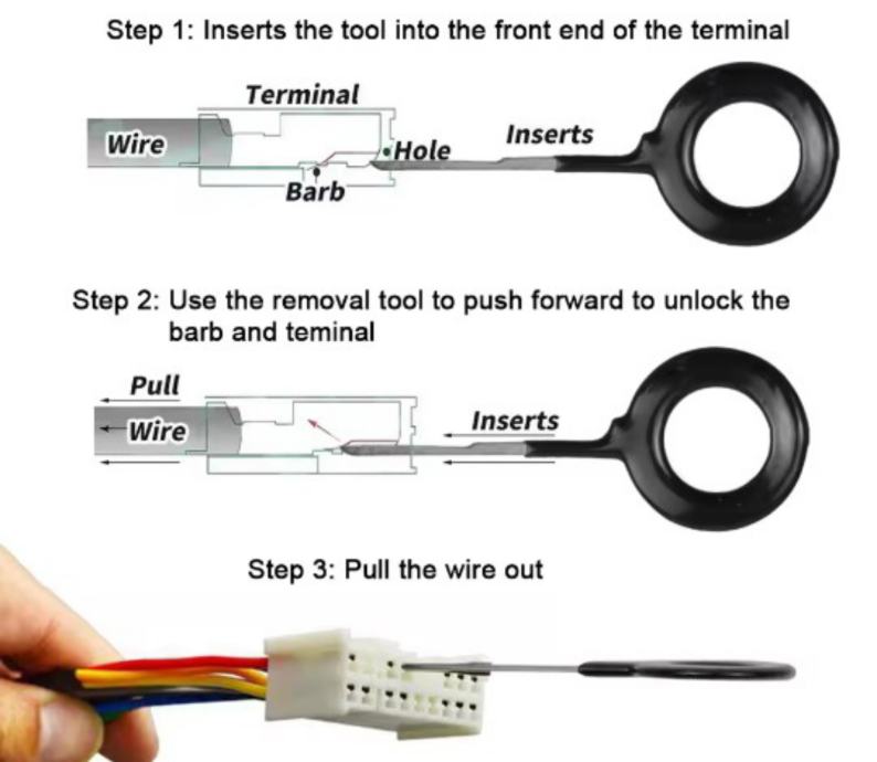 Idealno za autoelektričarske popravke, ali jednako odgovara i za sve ostale standardne višepinske konektore u elektronici, računalima i ostalim električnim uređajima, za rastavljanje gotovo svih vrsta konektora.