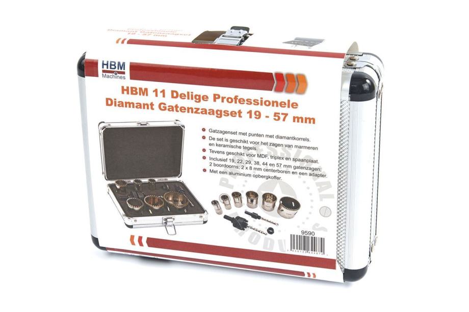 set pila za rupe s vrhovima dijamantnog zrnaset je pogodan za rezanje mramornih i keramičkih pločicapogodan i za MDF, šperploču i ivericuuključuje pile za rupe od 19, 22, 29, 38, 44 i 57 mm; 2 svrdla; 2 x 8 mm središnja svrdla i adapteraluminijska kutija za odlaganje]]>