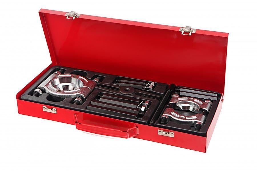 bilo da se radi o konusnim kotrljajnim ležajevima, kugličnim ležajevima ili drugim tijesno razmaknutim dijelovima, uz ovaj komplet za popravak ležajeva uvijek ćete ga odstranitičvrsta čelična kutija za pohranu ispunjena je s 2 lopatice ležaja izrađenih od krom vanadija, a dijelovi za produženje i prešanje izrađeni su čak i od krom molibdenanije ni čudo što ovaj mehanički set za prešanje može djelovati na ležaj snagom ne manjom od 2 toneSpojni vijci imaju vrlo fini navoj tako da komplet za izvlačenje ležaja može vršiti velike radijalne sile na ležajeveraspon od 14 do 100 mm promjer ležajamaksimalna visina osovine 40 cmkapacitet 2 tone dimenzije pakiranja 45 x 20 x 5 cmtežina 2,5 kg]]>