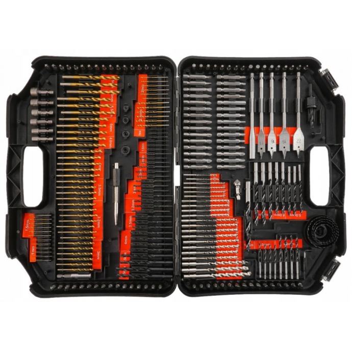 VERKE set pribora koji se sastoji od 246 predmeta: svrdla za drvo, svrdla za metal, svrdla za beton, oštra svrdla, pile za rupe, nastavci, imbus ključevi, upuštač, imbus ključ, adapteri