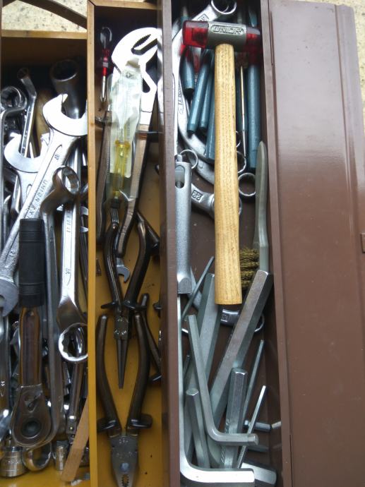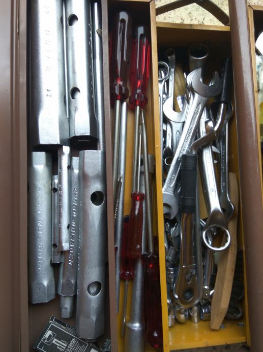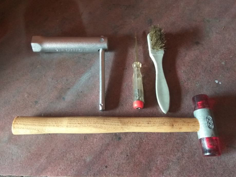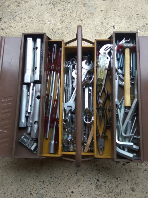 također u kompletu su : čekići,pajser,četka,ispitivać za struju....
