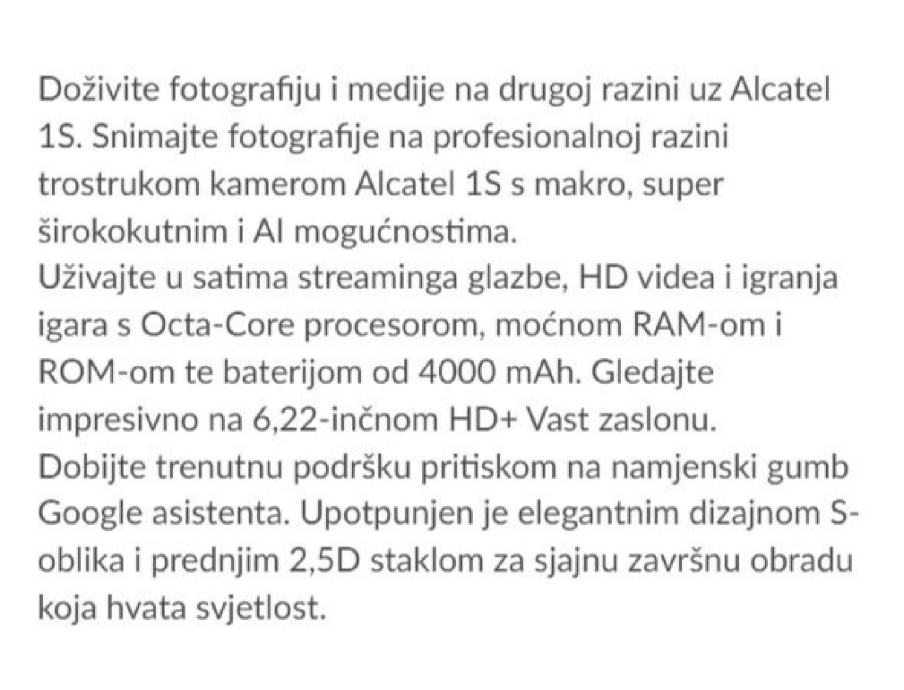Alcatel 1S (5028D) Black Editon novi pametni mobitel,dolazi u svojoj originalnoj kutiji sa svom svojom original opremom!