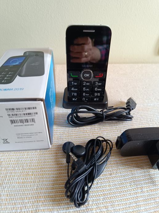 Alcatel 2019G mobitel nekorišten sa punjačem, slušalicama i stalkom.