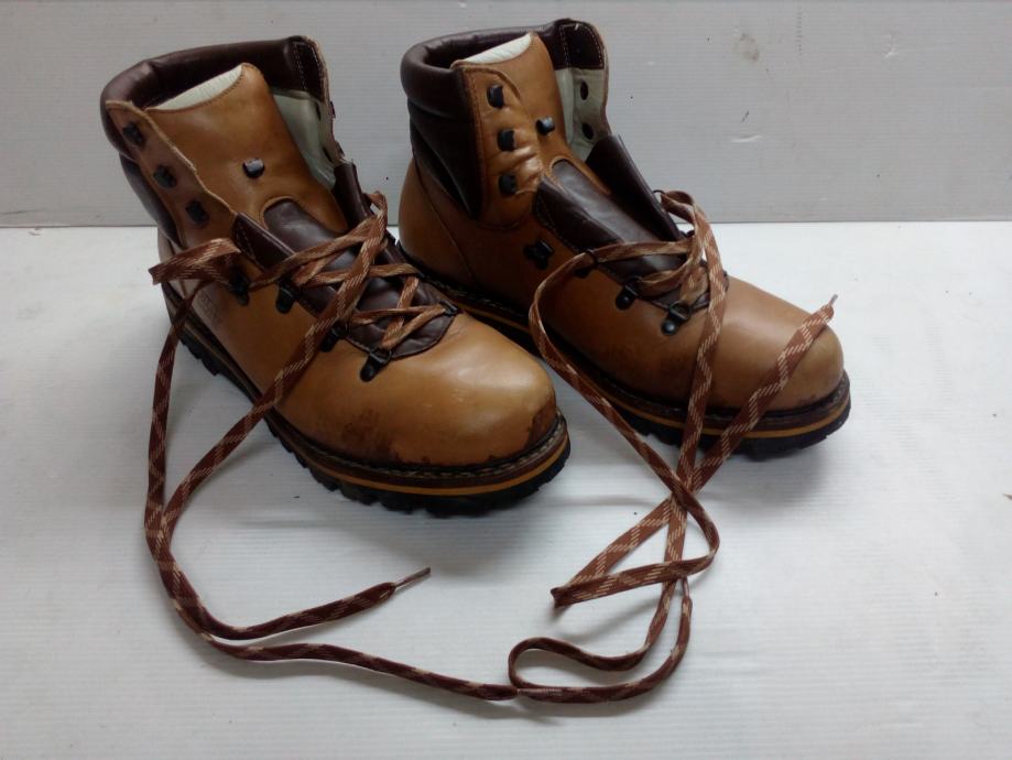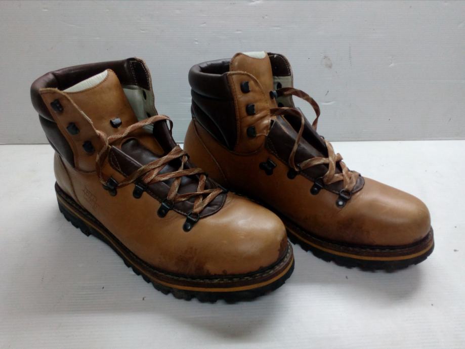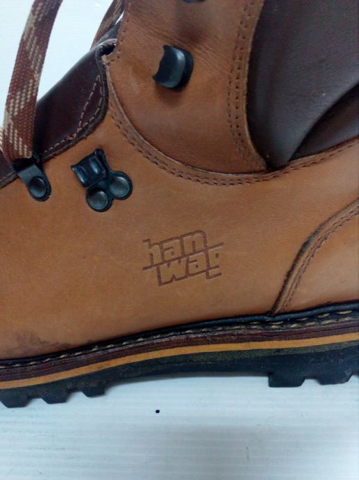 Hanwag muške kožne visokogorske zimske gojzerice, planinarske cipele - čizme za niske temperature, sa Vibram potplatom / đonom, krute, a lagane, Njemačke proizvodnje, veličina 12 ipo / 46 - 47 (uložak / gazište je 31,2 - 31,5cm), jednom korištene, nerazgažene, kao nove. Pogodne za lov, ribolov.