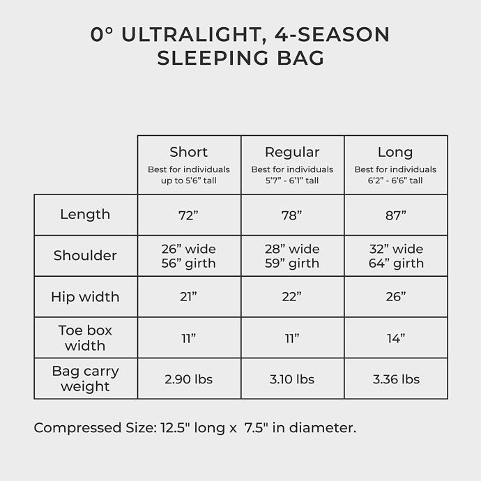 Continue hiking with the lightest down sleeping bag (-15/-10°C sleeping bags = short: 1.36/1.1kg, normal: 1.45/1.18kg & long: 1.52/1.27kg), which is available in this quality and at this price. Compare it with other major outdoor brands to see the price difference we achieve through direct sales to consumers. With this compact sleeping bag, you can climb any mountain and have space for your favourite fleece blanket, pillow and sleeping mat.
