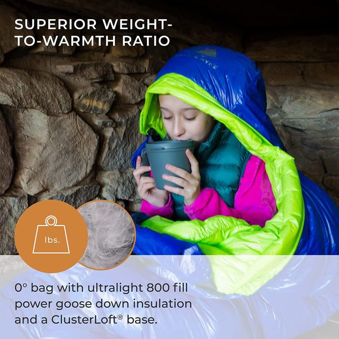 Save space and minimise weight with the ultra-light goose down filling in premium quality. A lightweight sleeping bag created by nature's best insulator with the highest warmth-to-weight ratio to withstand the winter weather during outdoor camping. Stay warm thanks to the down insulation and waterproof fabrics - the microscopic small air clusters in the down feathers create heat and keep you warm despite the cold.