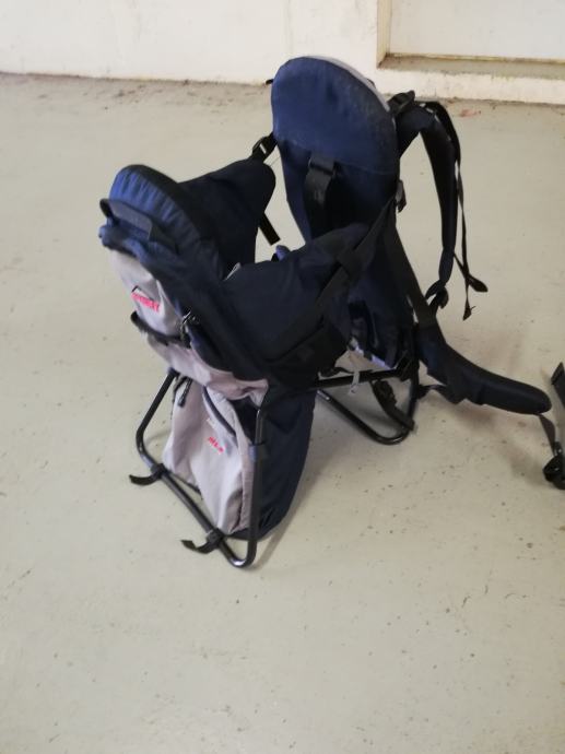 Od vodootpornog čvrstog materijala, lagane aluminijske konstrukcije, stabilna u vertikalnoj poziciji na tlu. Može se podešavati na bezbroj načina pa i prema visini nosača kako bi Vaše dijete bilo posebno sigurno i na najzahtijevnijim planinarskim rutama. Ima mekano podstavljeno anatomsko remenje za nošenje i dva pretinca za čuvanje stvari.