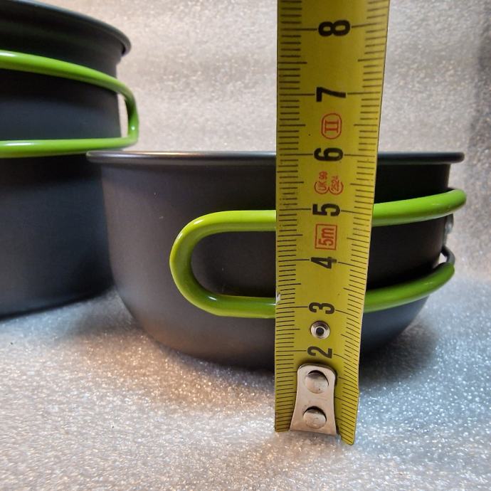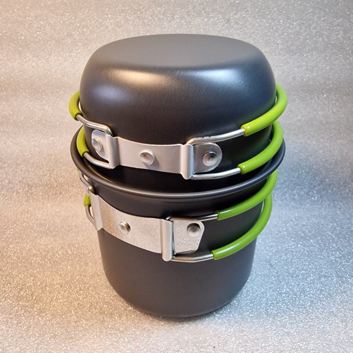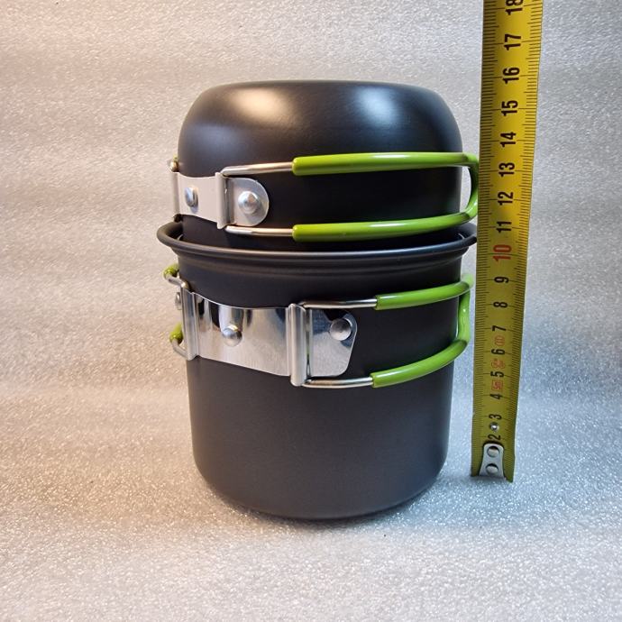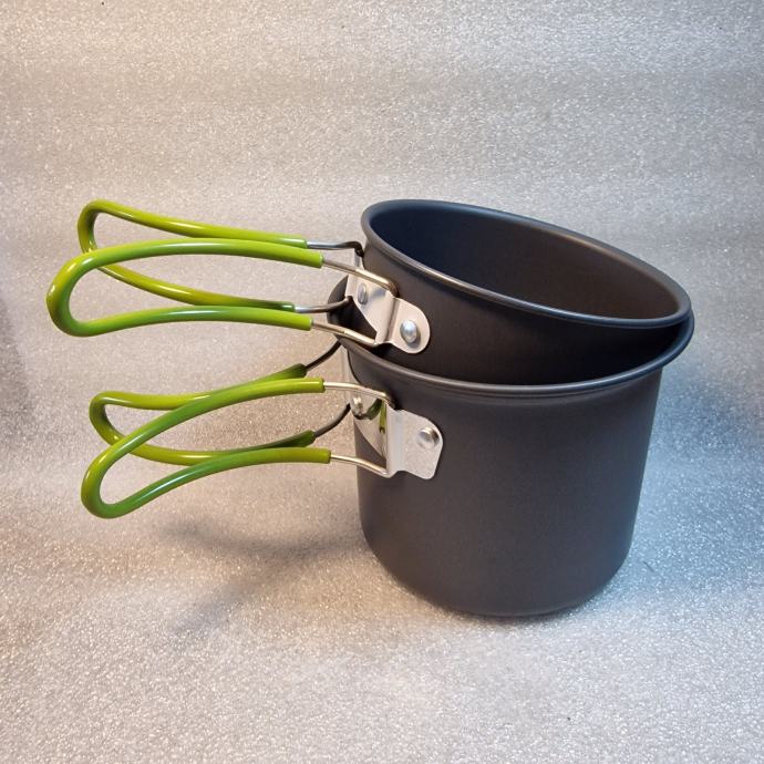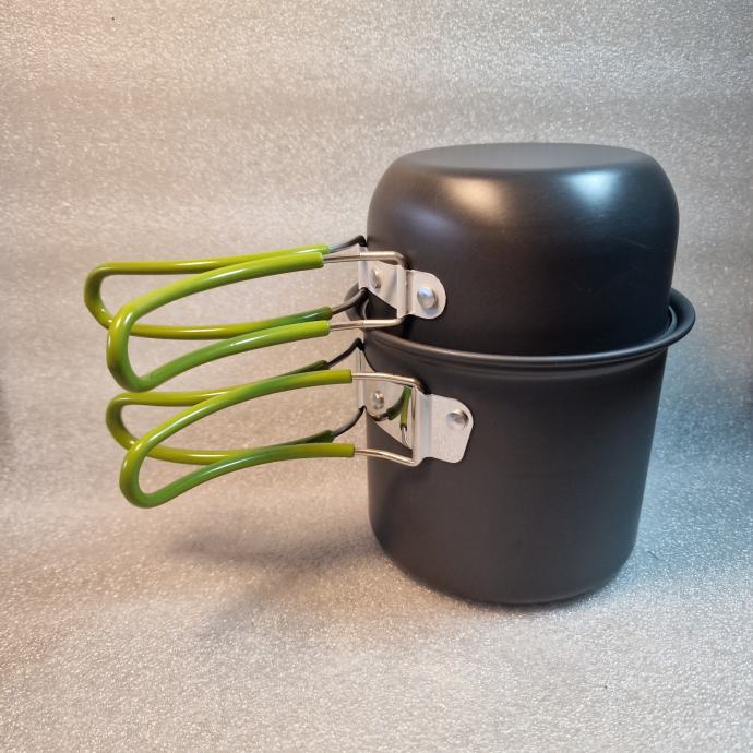 Potpuno nove outdoor posude za kampiranje i planinarenje s praktičnim zelenim ručkama koje se sklapaju. Kompaktan set koji se lako slaže jedan u drugi, idealan za nošenje u ruksaku tijekom planinskih izleta. Kvalitetna izrada i lagani materijal čine ih savršenim dodatkom za svakog ljubitelja boravka u prirodi.