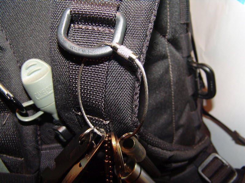 Može služiti za povezivanje više stvari koje se nose u đepu kao lampica, nožić, firesteel, multi tool(kao na slici) itd...