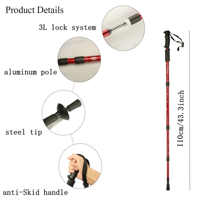 Teleskopski štapovi su izrađeni od aluminija. Imaju poseban teleskopski mehanizam koji omogućava prilagođavanje visine. Nude ugodne ručke s trakama. Nude dva para kapica- veći su primjereni za hod po snijegu, a manji za hod po čvršćoj podlozi. Za hod po asfaltu su priloženi posebni gumeni čepovi.
