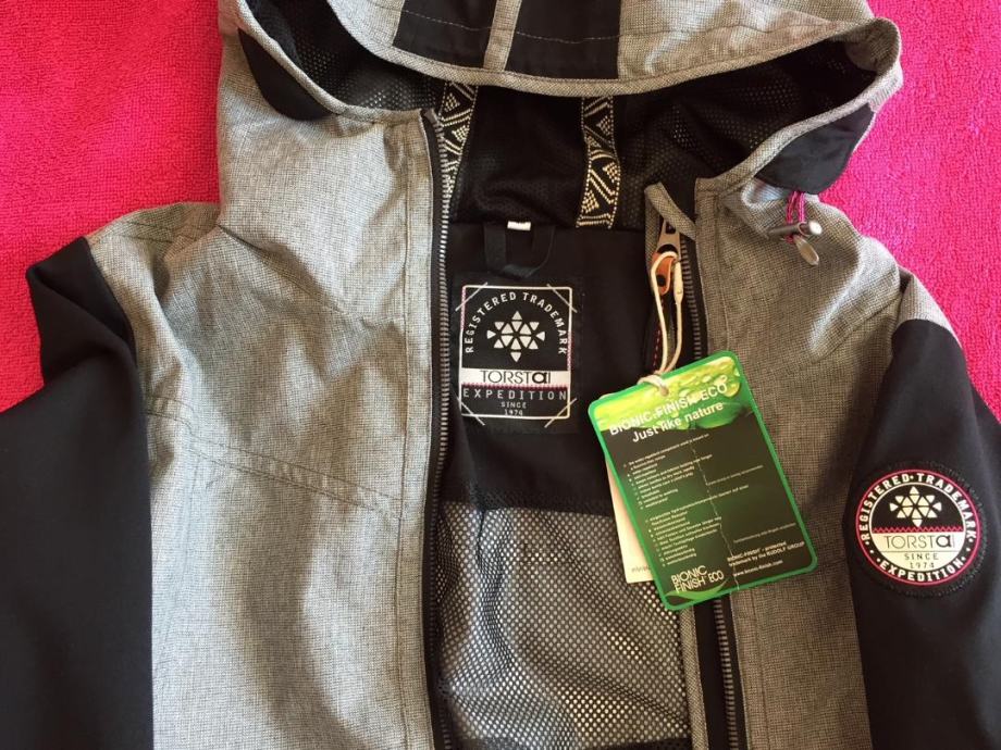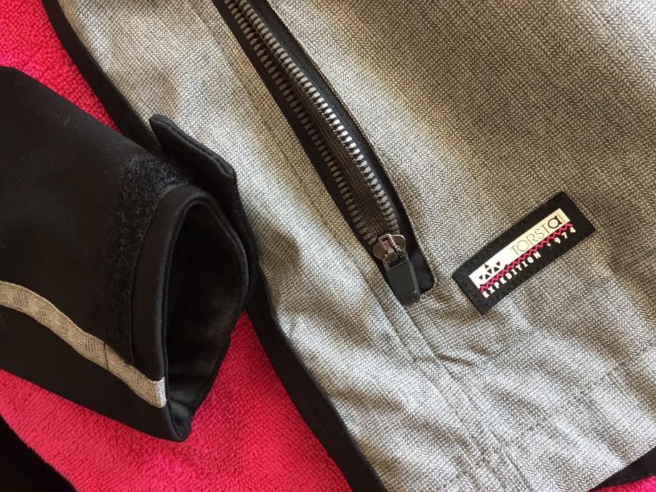 Kvalitetna funkcionalna jakna finskog brenda Torstai u sivoj boji s crnim detaljima.