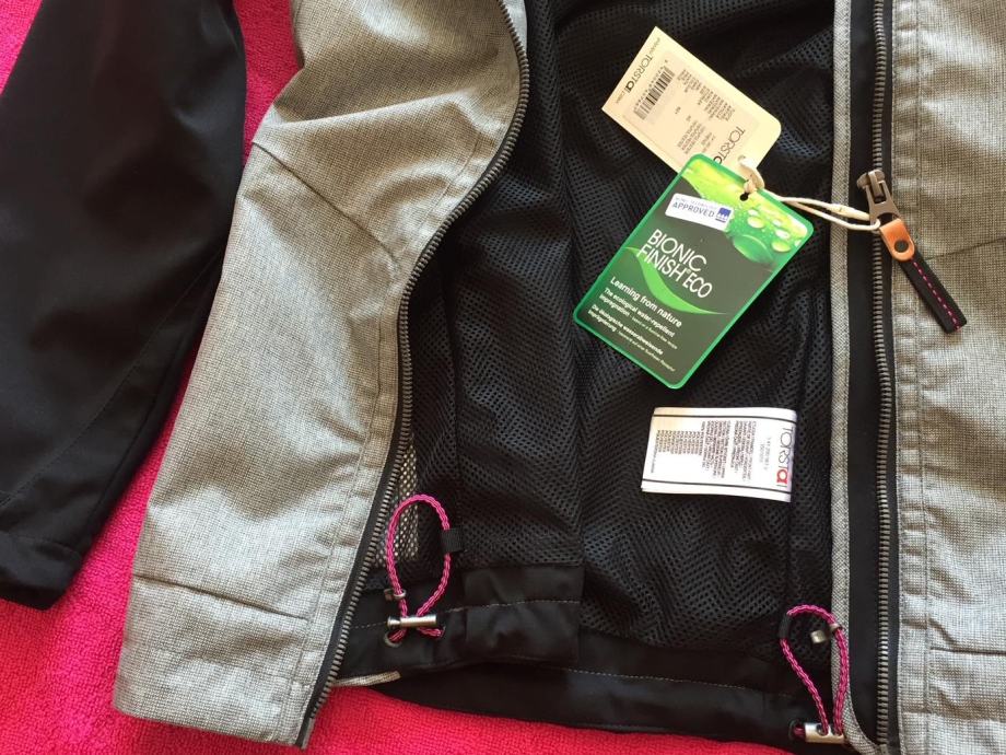 Izrađena je od poliesterskog softshella, posebnom bioničkom tehnologijom kojom se dobila ekološka vodoodbojna impregnacija-bionic finish eco. Podstavljena s mrežastom tkaninom.