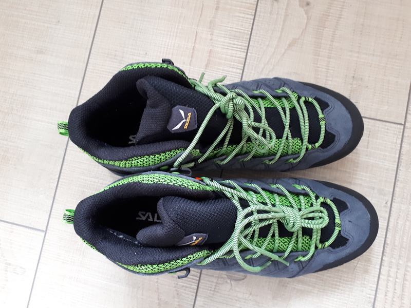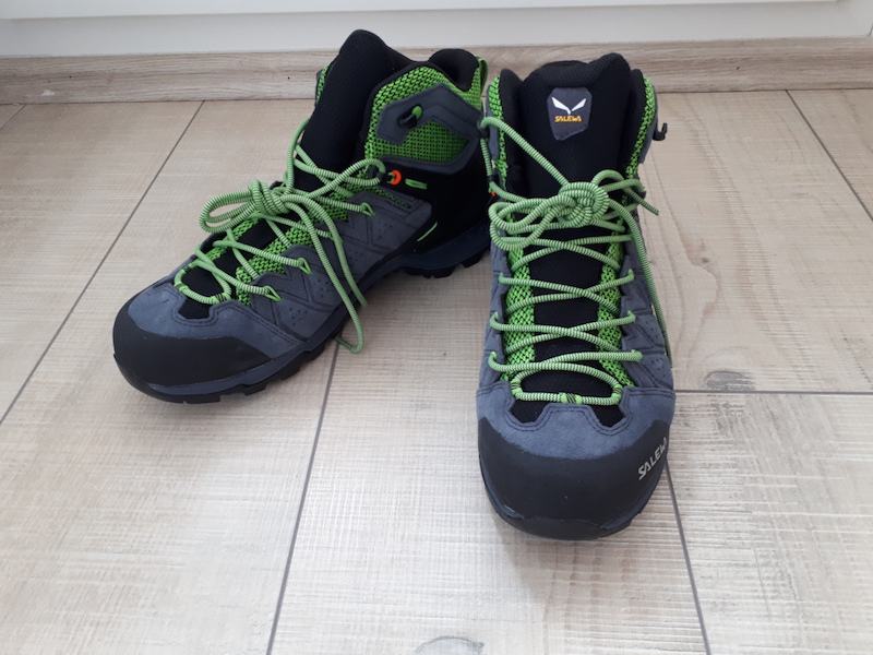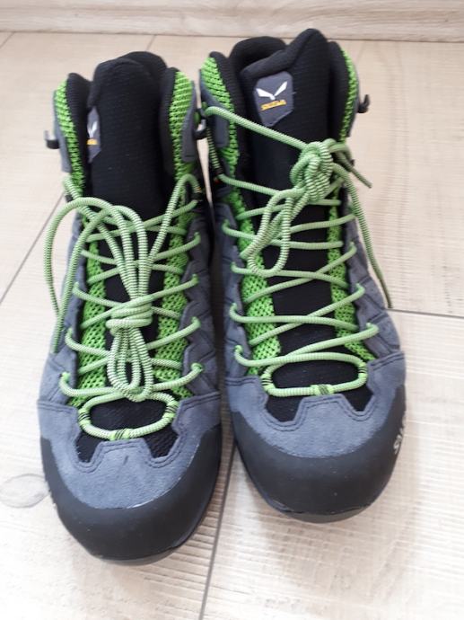 Sivo-zelene treking gojzerice srednje visine marke Salewa.