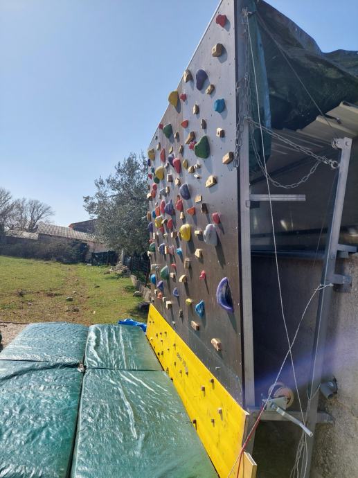 Stijena je pomična, na koloturima sa kočnicom i lancem kao dodatnim osiguranjem.